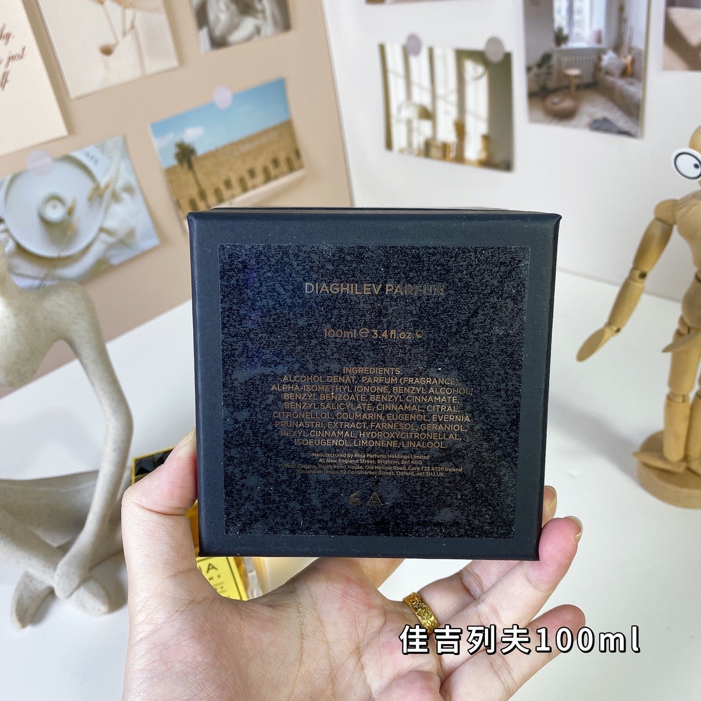 Base notes: oakmoss, civet, leather, musk, cloves, labdanum, patchouli, benzoin, vetiver, ambrette, Peruvian balsam, guaiac wood, vanilla, benzoin, cedar, nutmeg, sandalwood